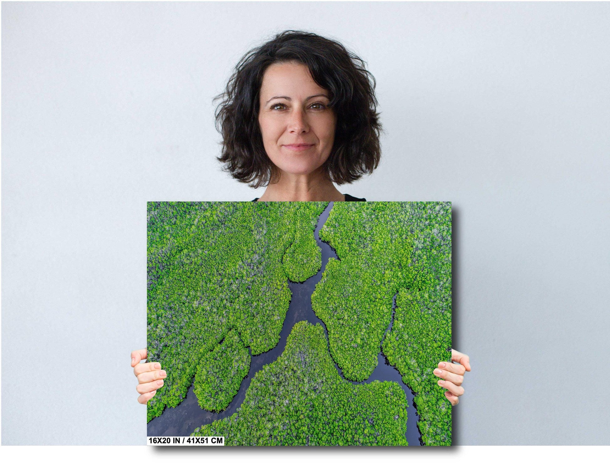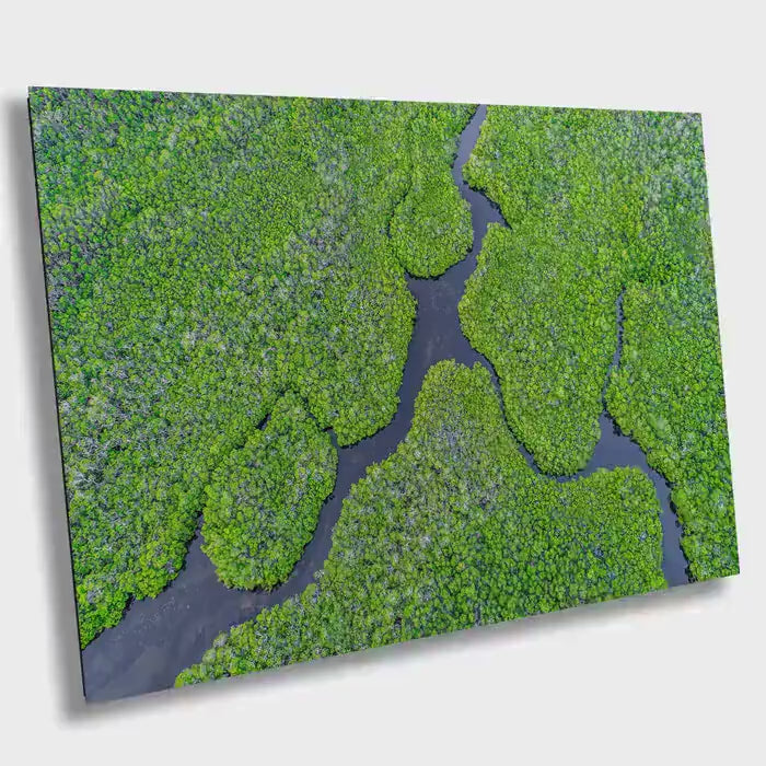 Aerial Mangrove Wall Art brings the serene beauty of tropical mangrove forests into your living or workspace, offering a tranquil nature scene that transforms any room. This nature photography canvas captures lush green waterways from an overhead perspective, creating a modern home décor piece that enhances both comfort and style. Printed on eco-friendly canvas, this mangrove forest print combines sustainability with stunning coastal photography art, making it an ideal office wall decoration or living room centerpiece.