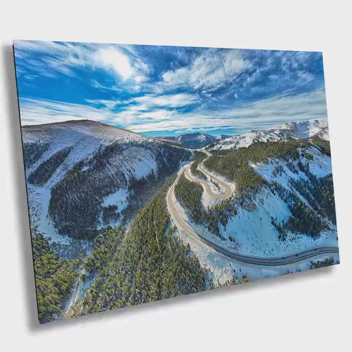 Berthoud Pass wall art captures the breathtaking beauty of Colorado's snowy mountain road in a stunning winter landscape photo, bringing the Rocky Mountains into your living space with authentic nature photography. This Colorado mountain print features detailed aerial mountain photography that highlights crisp details and vibrant colors, making it the perfect scenic nature decor for enhancing your home or office. Whether you want to add a mountain road canvas to your ski lodge wall art collection or gift a timeless piece of Rocky Mountains artwork, this Berthoud Pass print offers lasting color fidelity and durability thanks to UV resistant inks and premium materials.