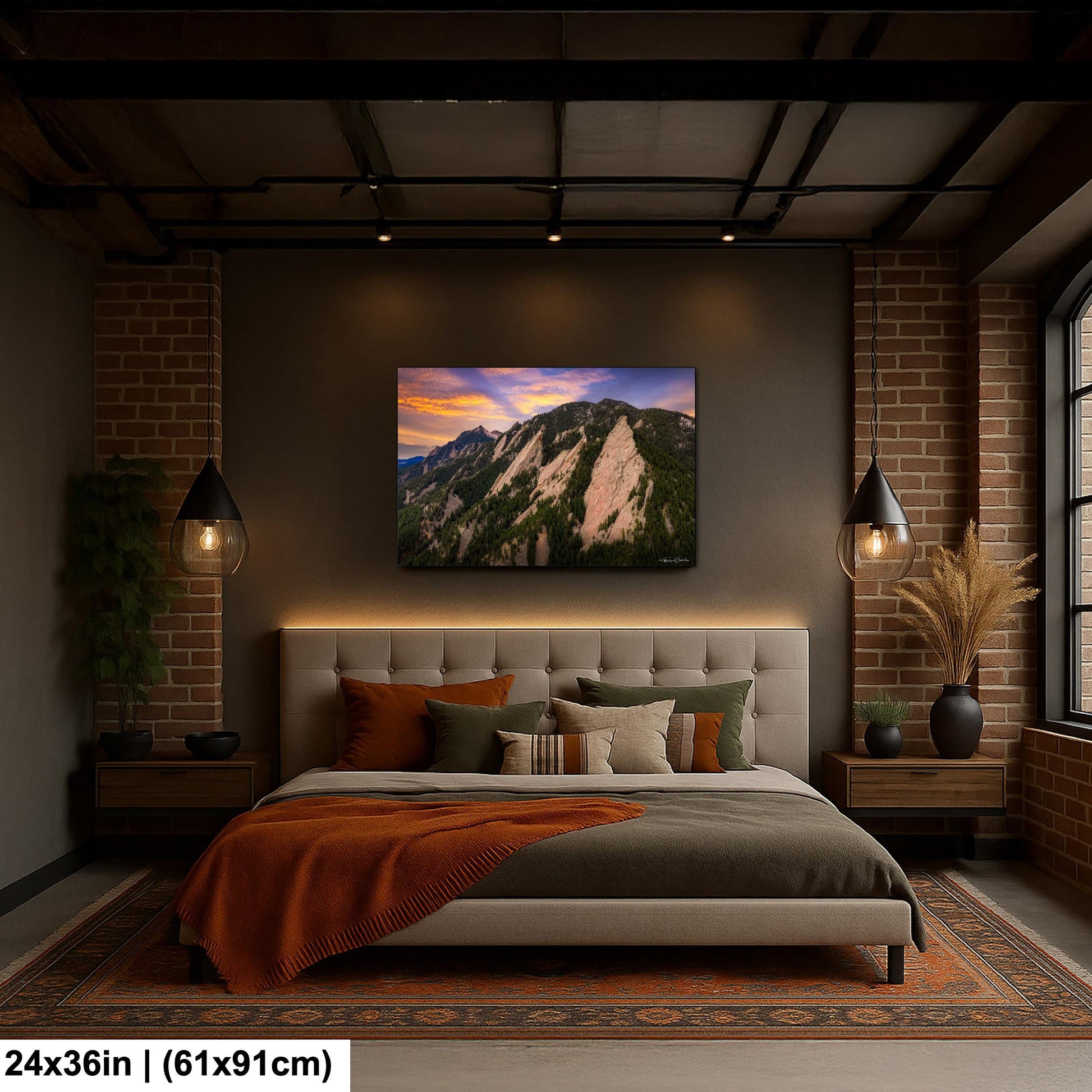 The Boulder Flatirons Sunset Print is a stunning Colorado mountain wall art designed to bring the breathtaking beauty of the Rockies into your home. This scenic landscape art captures the vibrant colors of a mountain sunset print, offering a colorful canvas art piece that transforms any space with nature photo print quality and vivid detail. Perfect for rustic cabin decor or modern interiors, this ready to hang canvas and other print options provide long-lasting UV resistant artwork that maintains its brilliance over time.