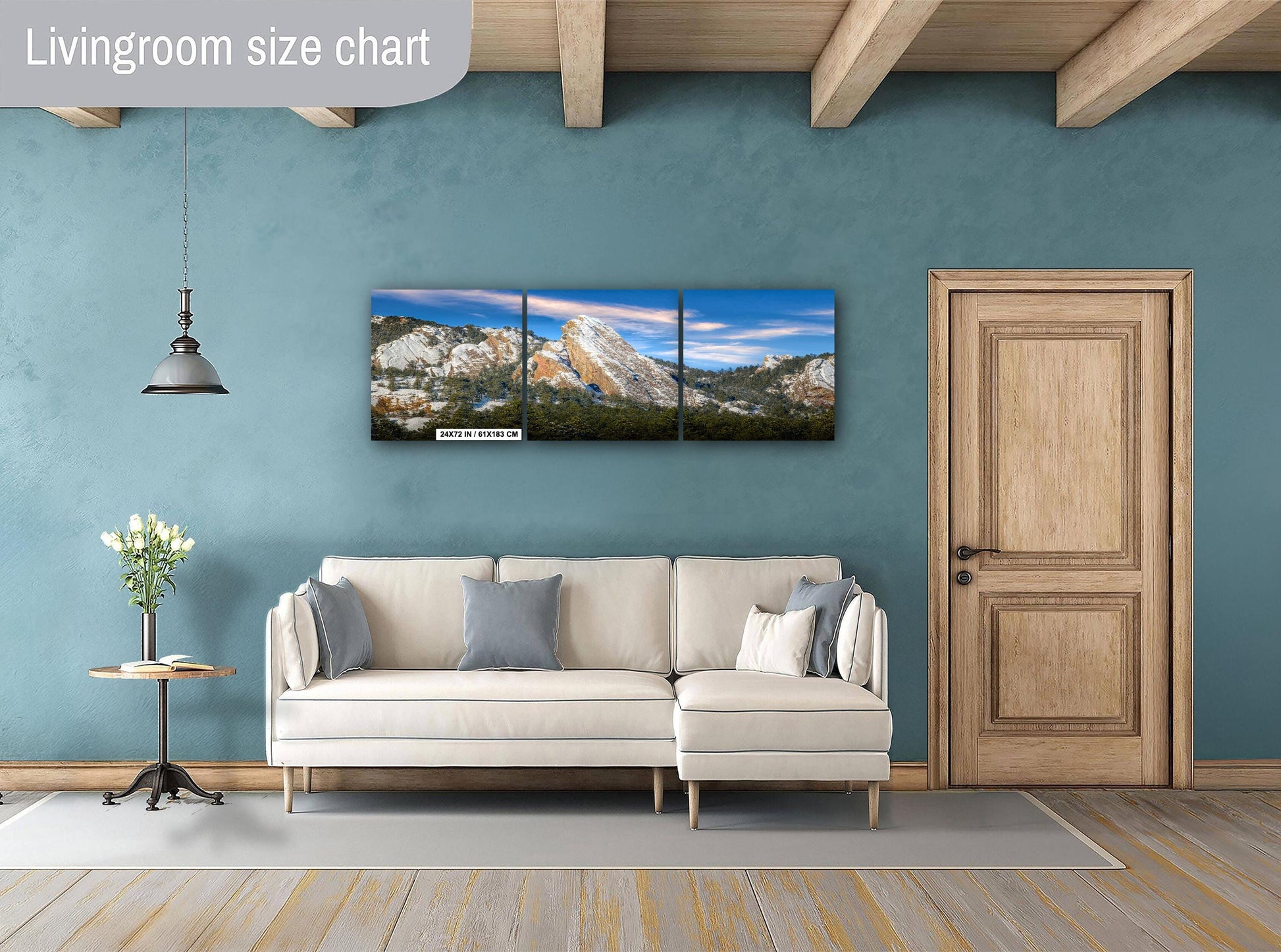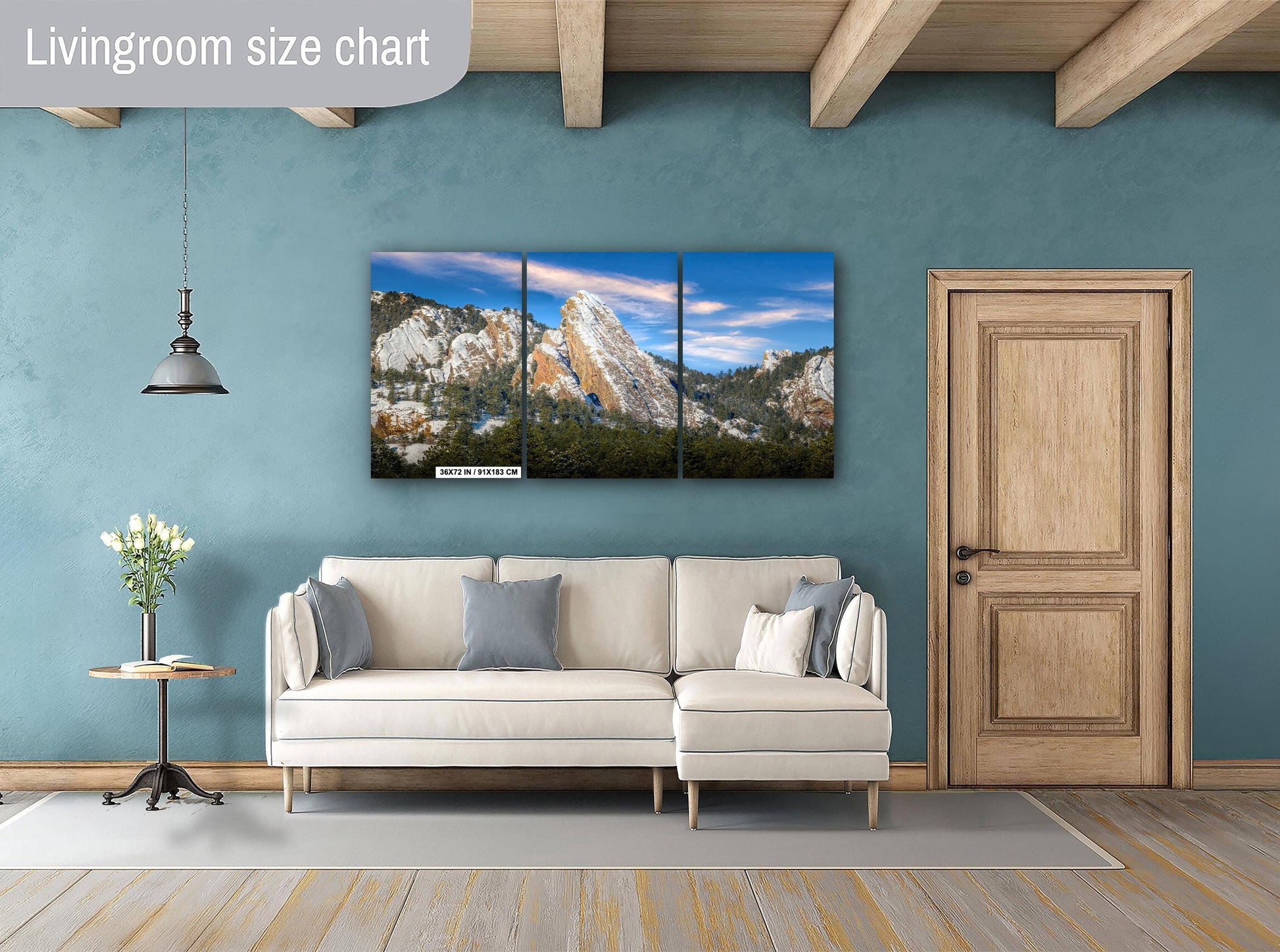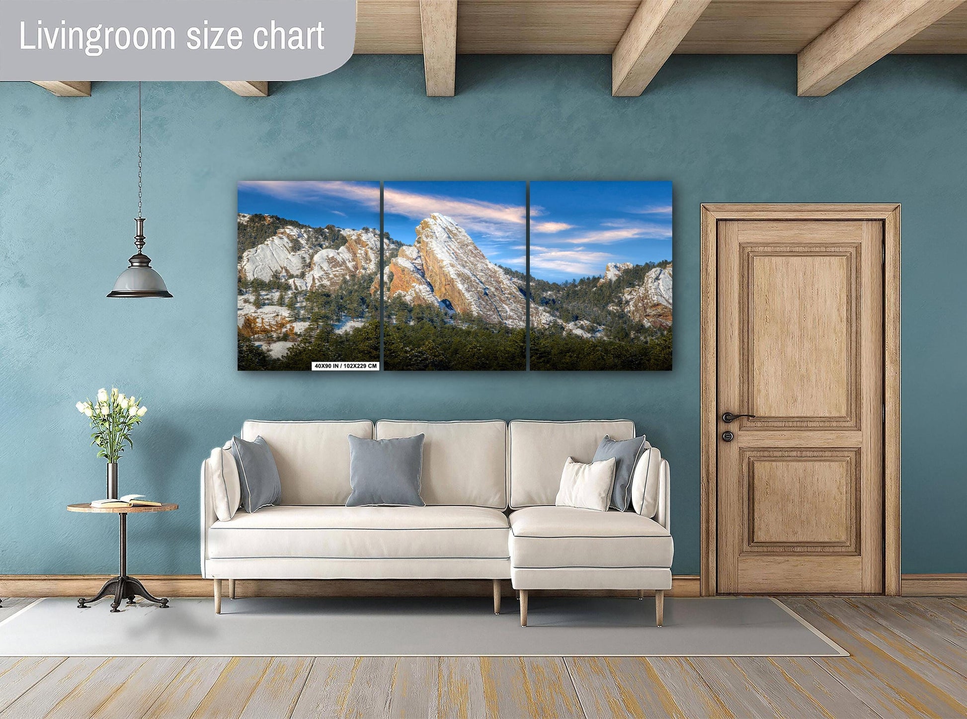 - Triptych canvas panels: Large-scale scenic mountain print divided into three equal panels, creating a modern statement piece that adds dimension to your space.
