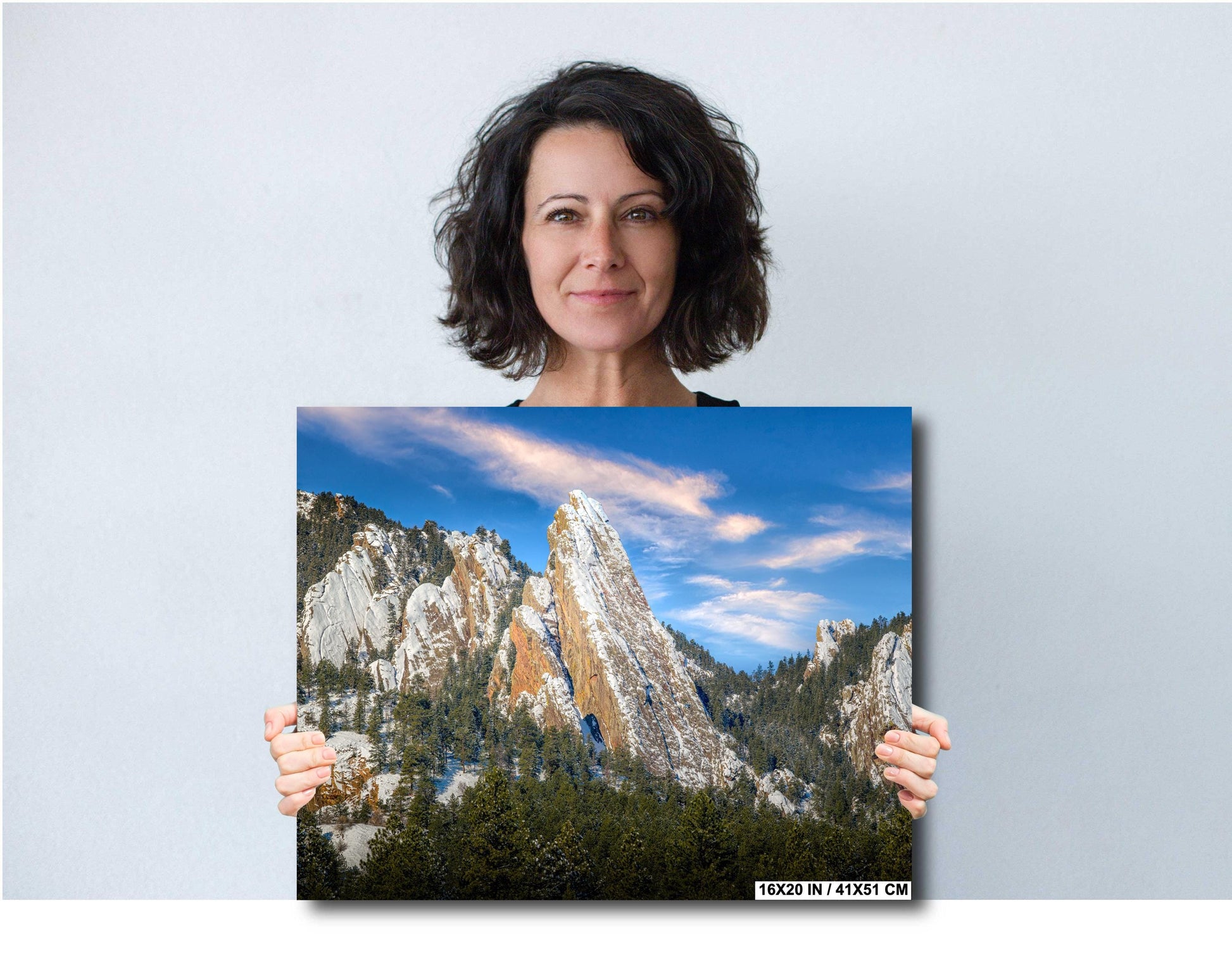 The Boulder Flatirons photo print captures the breathtaking beauty of Colorado mountain art, offering a stunning mountain landscape art piece that transforms any mountain home decoration. This scenic mountain print features the iconic snow-covered Flatirons with vivid clarity, bringing authentic nature wall decor into your living space. Crafted by 998 Millibar Photography, this outdoor photography art delivers precise details and vibrant colors that make your walls a captivating display of snowy mountain photo excellence.