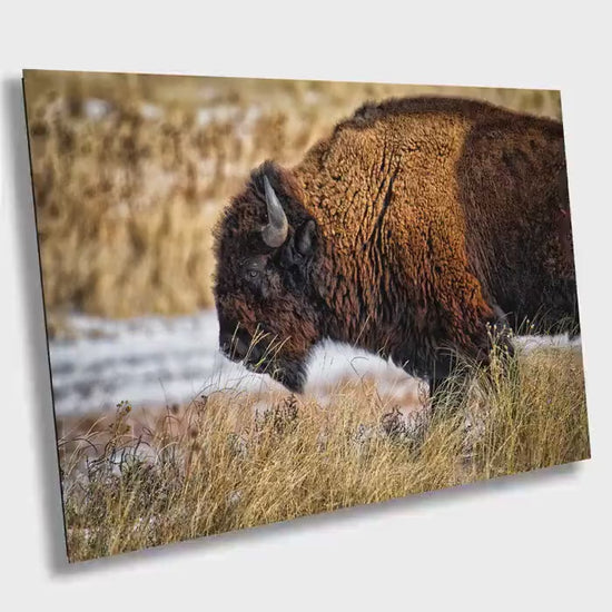 Buffalo wall art brings the majestic American bison into your space with vivid bison snow scene canvas and wild buffalo metal print options designed to enhance any room with rustic nature art charm. This buffalo wall art collection by 998 Millibar Photography features large buffalo canvas and acrylic wildlife art that transforms your home or office with authentic buffalo silhouette art and timeless buffalo home decor appeal. Crafted with high-quality materials, each piece captures the spirit of the plains through detailed plains bison artwork and nature wildlife poster quality.