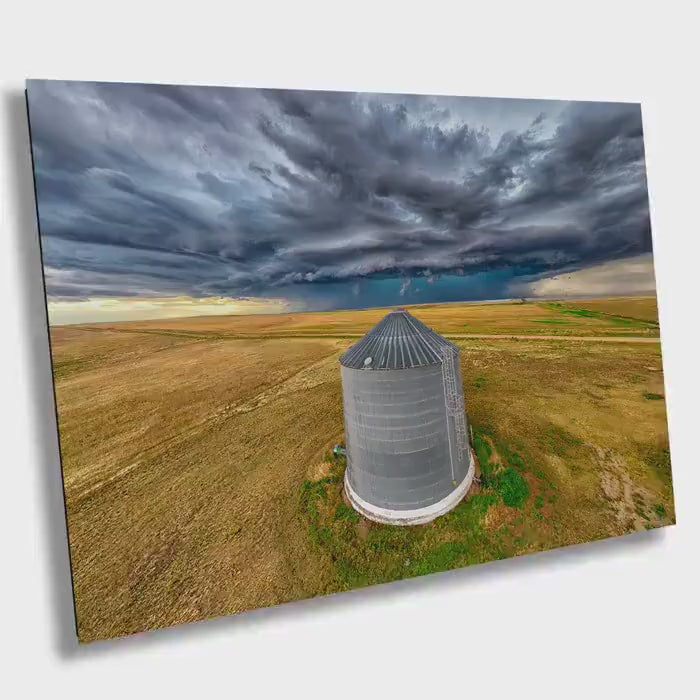 Farm Photo Wall Art captures the essence of rural life with a stunning grain bin print that brings Rustic Americana Decor directly into your home. This Farm Photo Wall Art features a high-resolution Supercell Storm Photo that highlights the beauty of Rural America Photography, making it a striking focal point for Countryside Home Decor. Crafted by 998 Millibar Photography, this Agricultural Wall Decor combines authenticity and charm to evoke the peaceful spirit of the heartland.