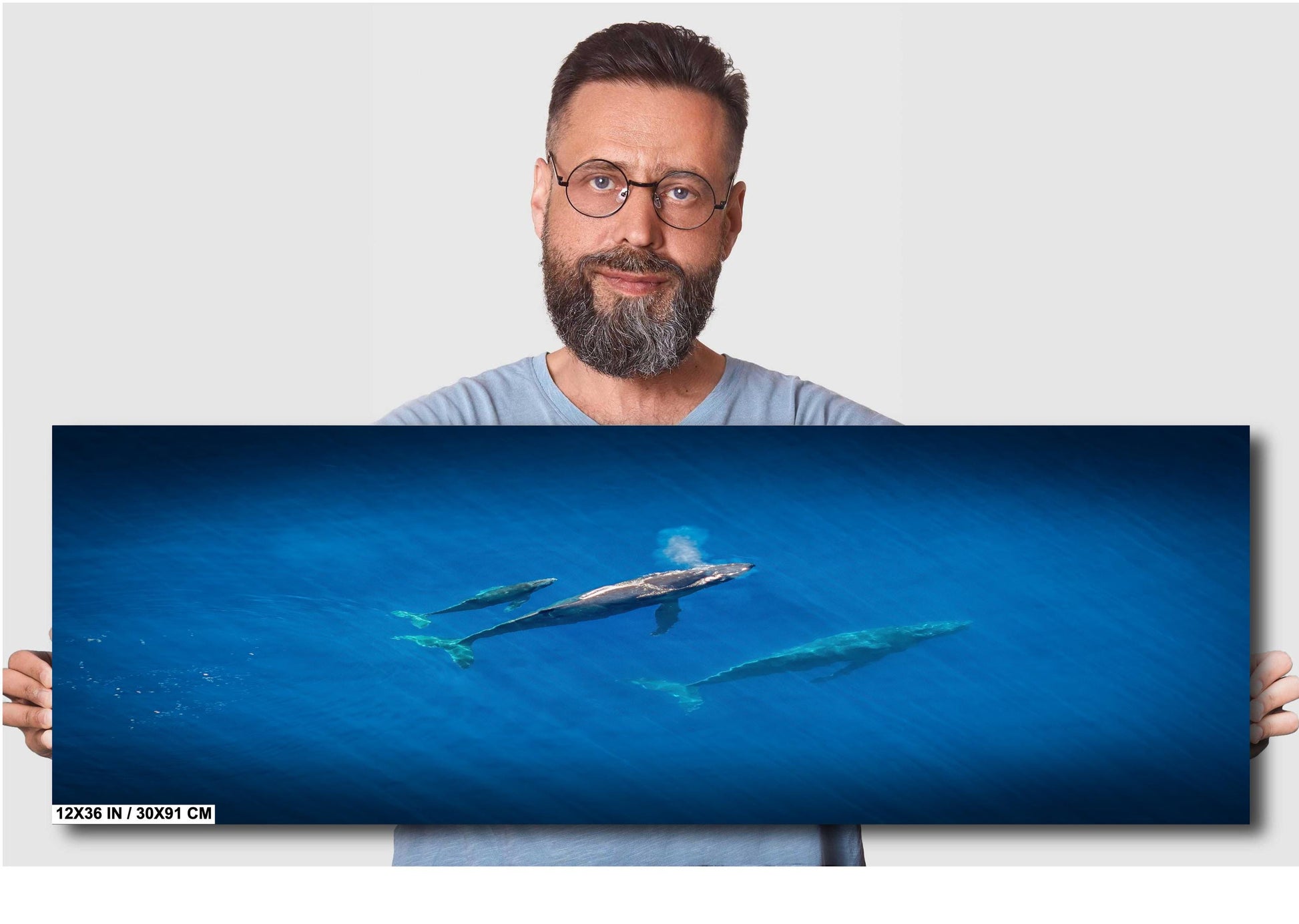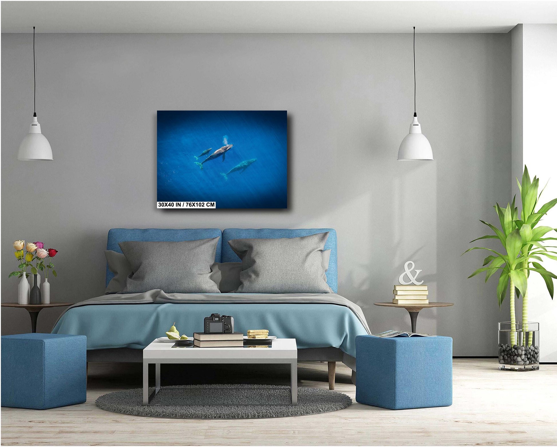 This whale family art is perfect for anyone seeking authentic Maui whale photo imagery combined with professional printing quality. Whether decorating a baby's nursery or enhancing living room walls, this fine art whale print creates a calming underwater atmosphere and a timeless connection to marine life decoration.