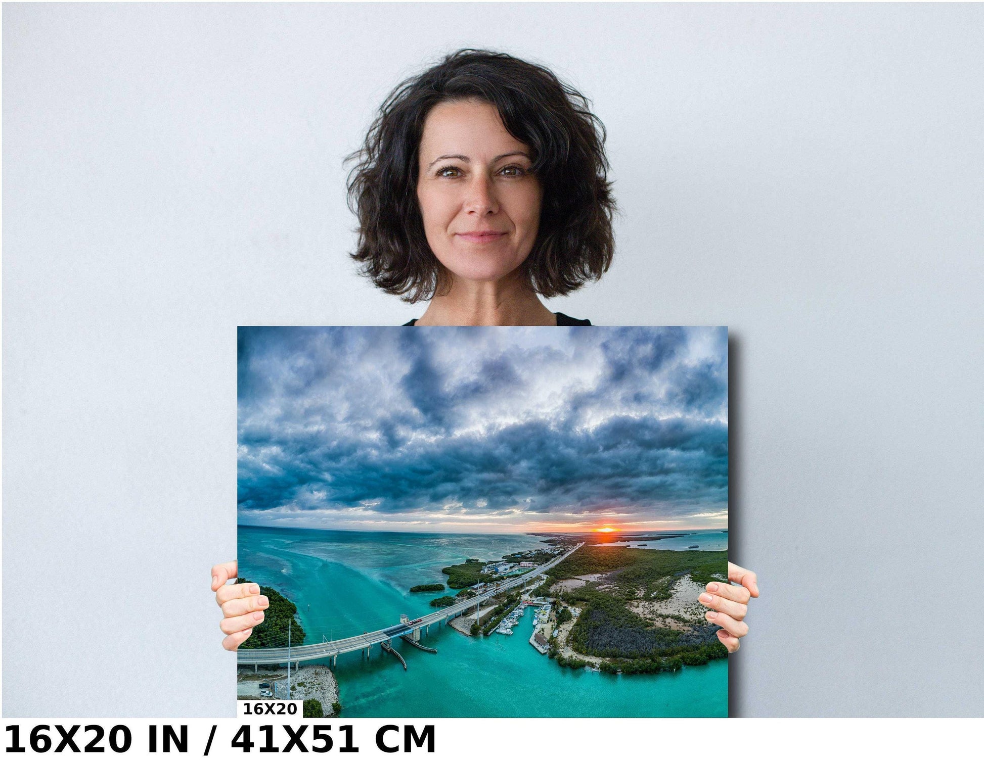 Custom sizes are available upon request—contact us to discuss your needs. Transform your wall with this drone sunset picture that captures one of Florida’s most iconic views in stunning detail. This modern wall decor piece will elevate any space with its coastal elegance and vibrant presentation.