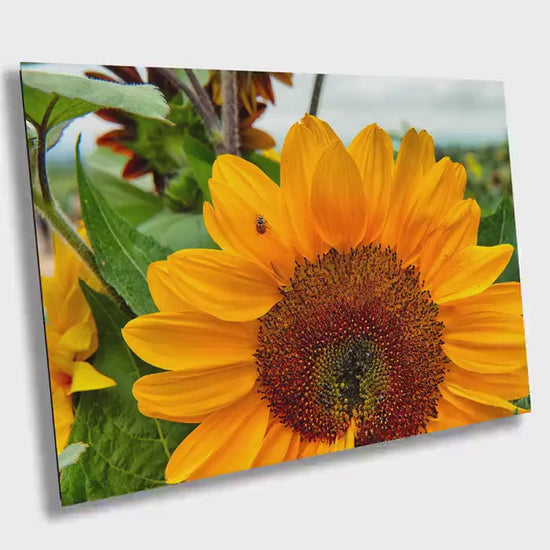 The yellow sunflower wall art by 998 Millibar Photography brings vibrant flower artwork into your home, featuring a stunning ladybug on sunflower that brightens any space with natural charm. This sunflower canvas print captures the essence of a summer nature photo with vivid colors and lifelike detail, making it an ideal farm landscape decor piece to enhance your rustic wall decoration. Crafted using fade-resistant inks and premium materials, the yellow sunflower wall art promises lasting beauty and effortless style for years.