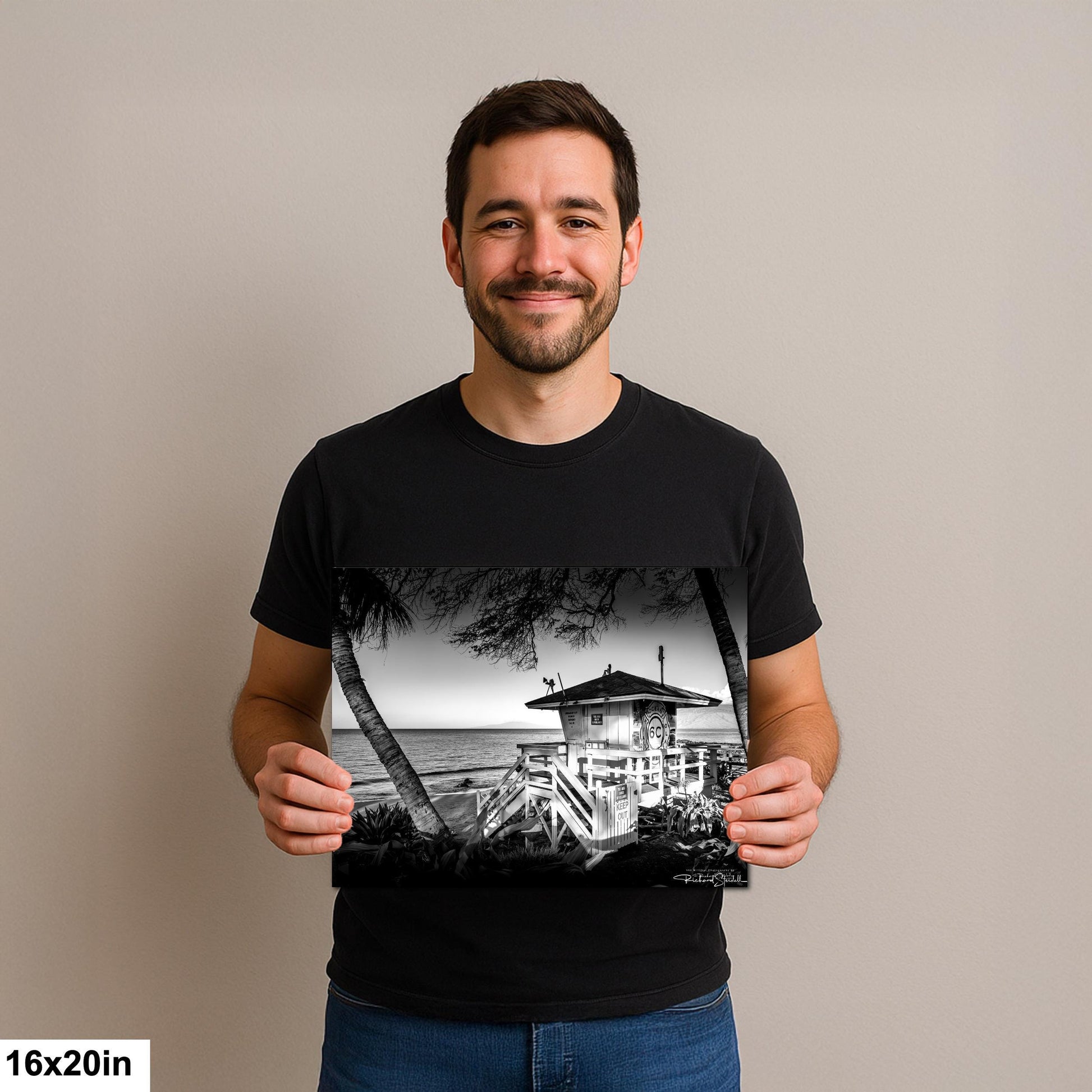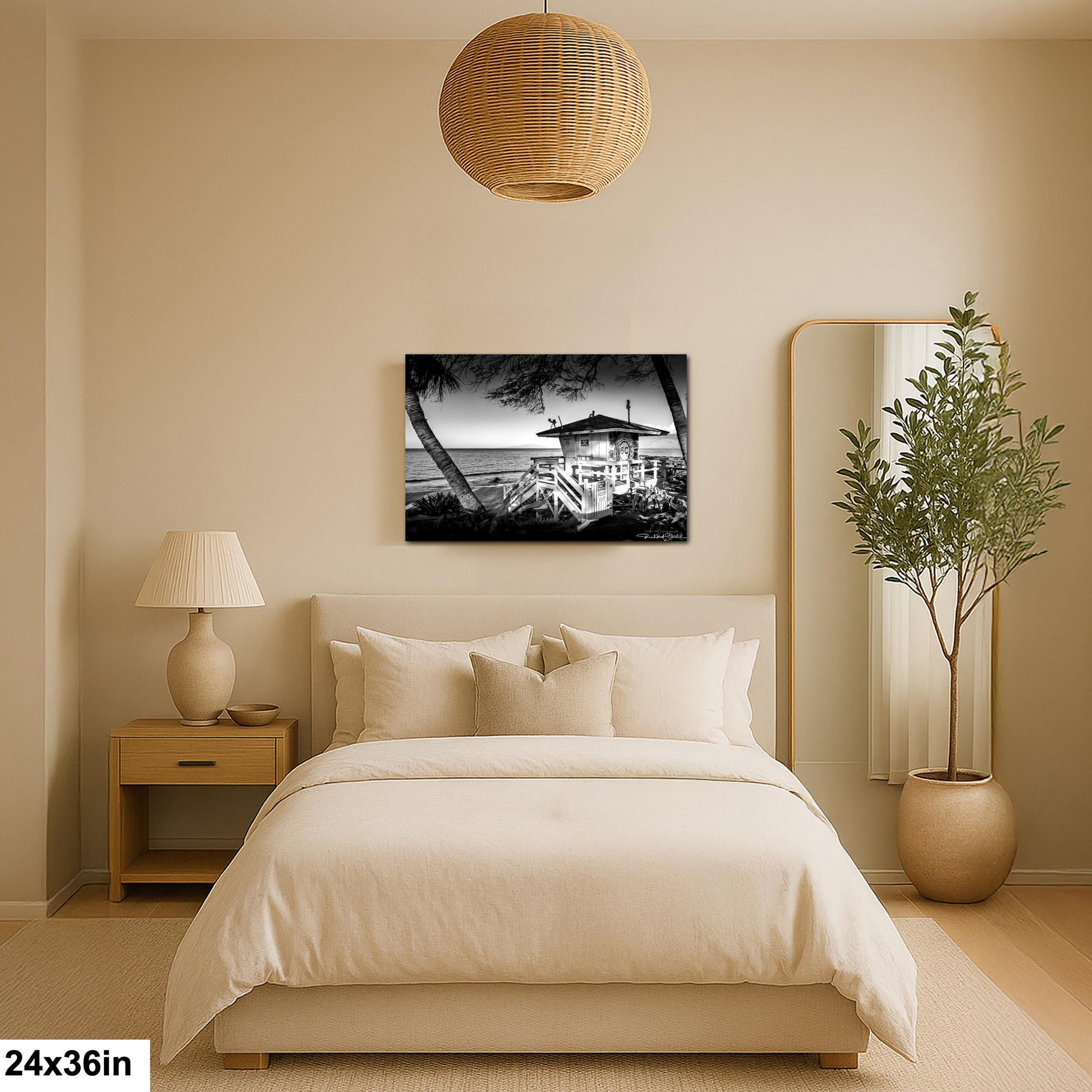 The Maui Lifeguard Photo Print captures a serene nature scene that brings calm and beauty to your space. This coastal wall art, available as a black and white print, offers a timeless look perfect for beach house decor or modern coastal decor enthusiasts. Crafted with premium photo paper or ready to hang canvas, this tropical beach print transforms any room with its vivid detail and high-quality finish. Whether you choose the sleek aluminum metal print or the vibrant acrylic photo print, each option features UV resistant wall art technology to prevent fading and maintain brilliance.
