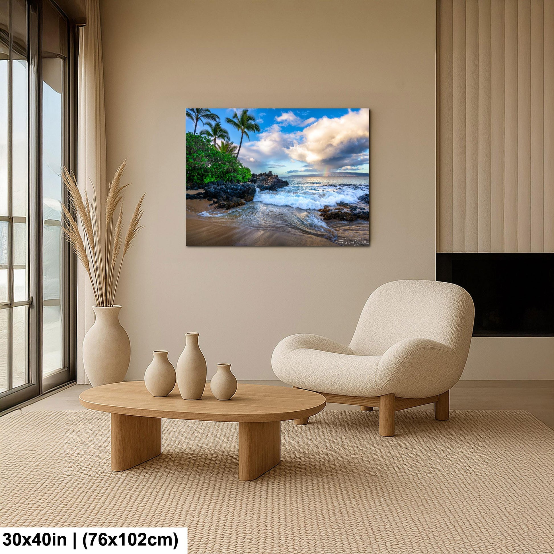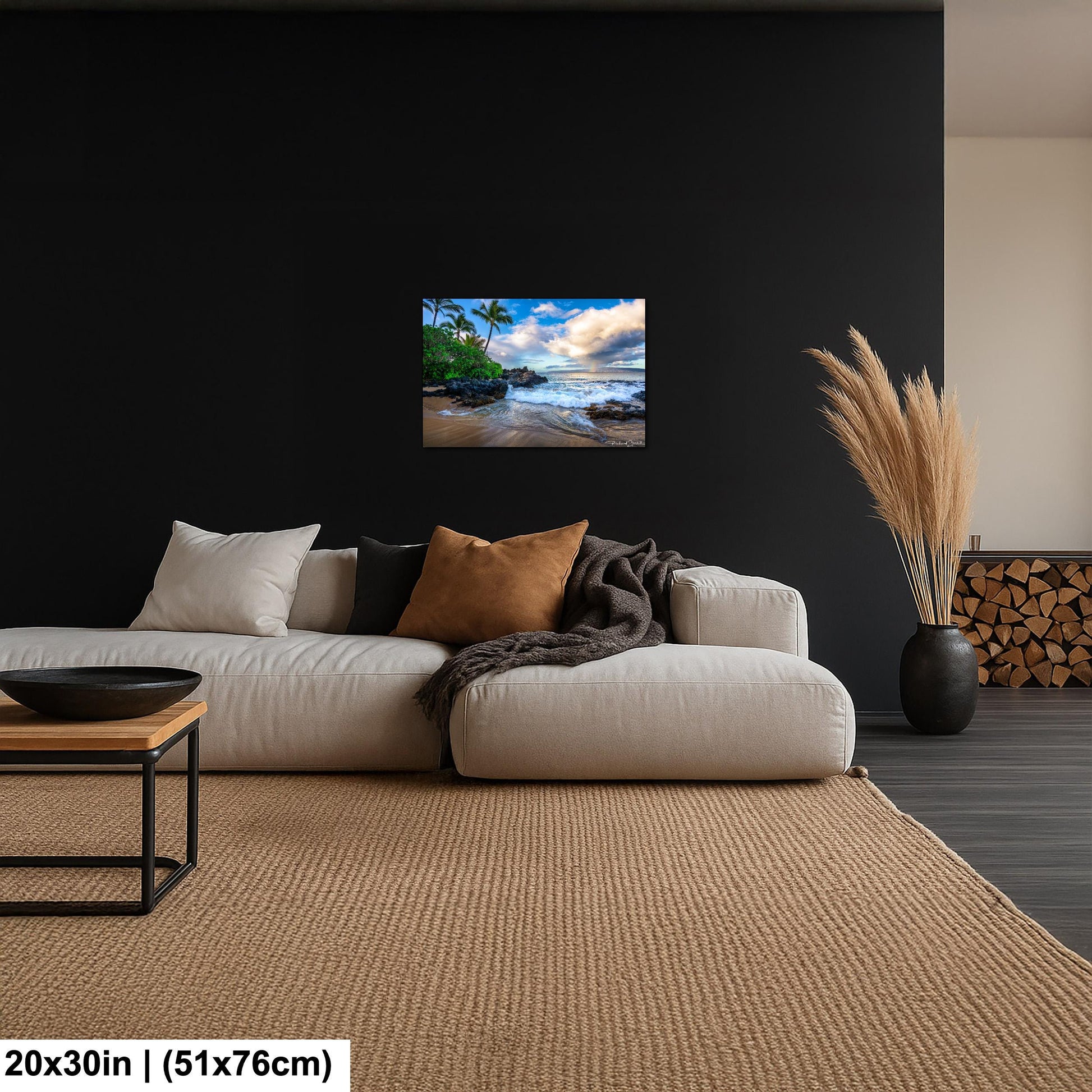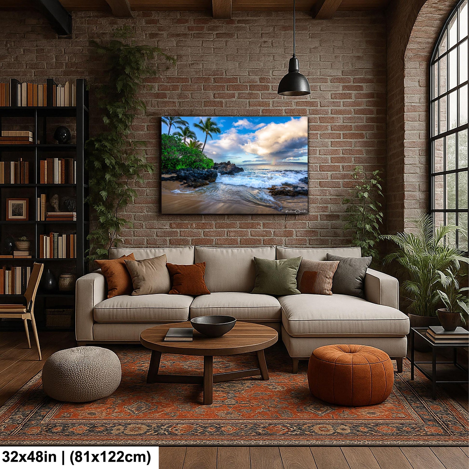 This Maui Secret Beach Photo Print is perfect for anyone looking to add sunrise beach art that captures the peaceful essence of Hawaii’s coastline. Whether you prefer large canvas panels or sleek aluminum metal prints, this collection offers versatile options that blend seamlessly with modern wall decor trends.