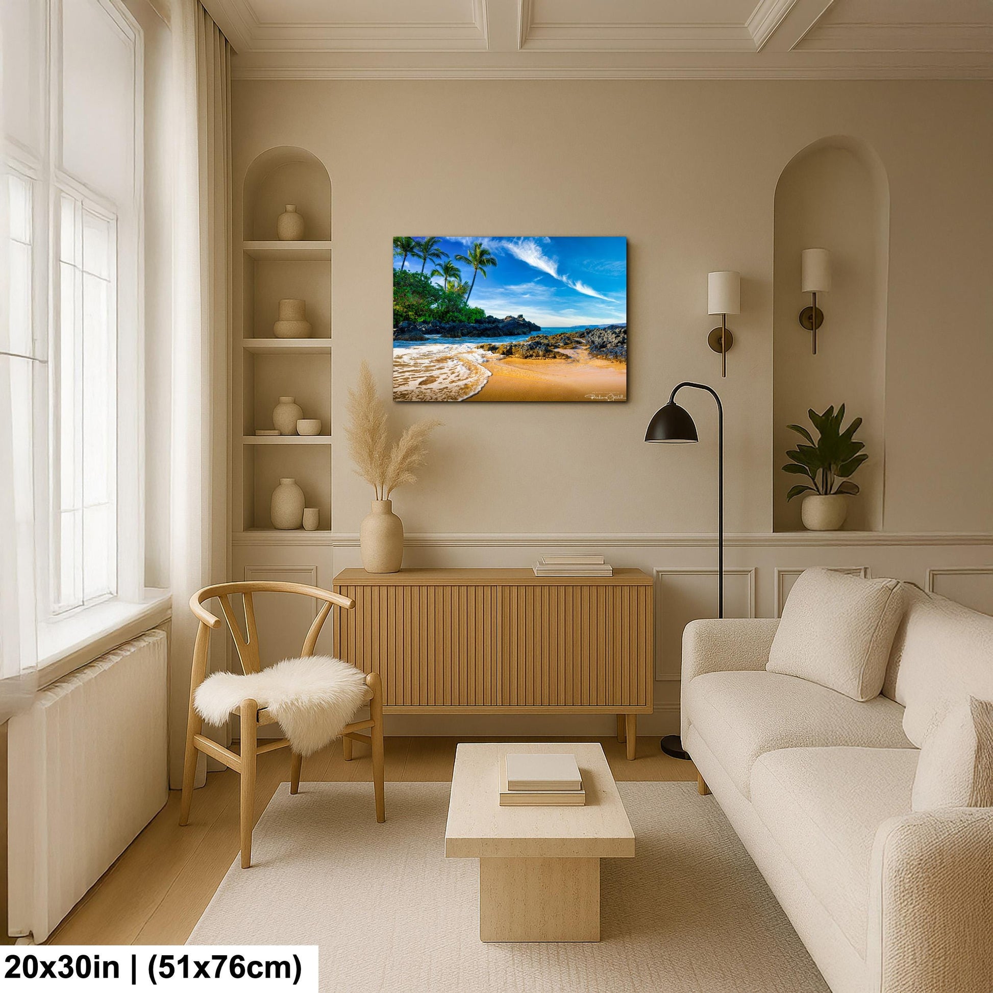 Elevate your living space with this Makena Maui wall print that brings the peaceful energy of Hawaii’s Secret Beach directly into your home. Whether displayed as a single premium photo paper print or as large canvas panels that command attention, this collection offers something for every art lover seeking authentic Hawaiian beach decor.