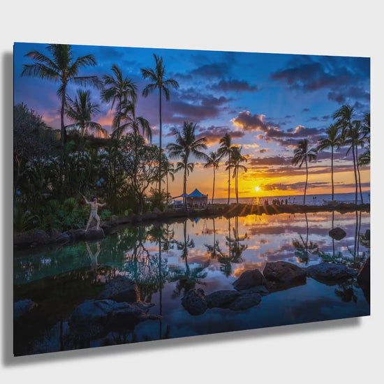 The Maui sunset photo print captures the breathtaking beauty of a Maui ocean sunset, making it the perfect Hawaii wall art to bring tropical vibes into your home. This vibrant print offers vivid photo paper quality and modern beach decor styles like ready to hang canvas, aluminum metal print, acrylic photo print, and triptych canvas art, all designed to showcase sharp colors and rich detail that recreate the serene ambiance of sunset beach decor.