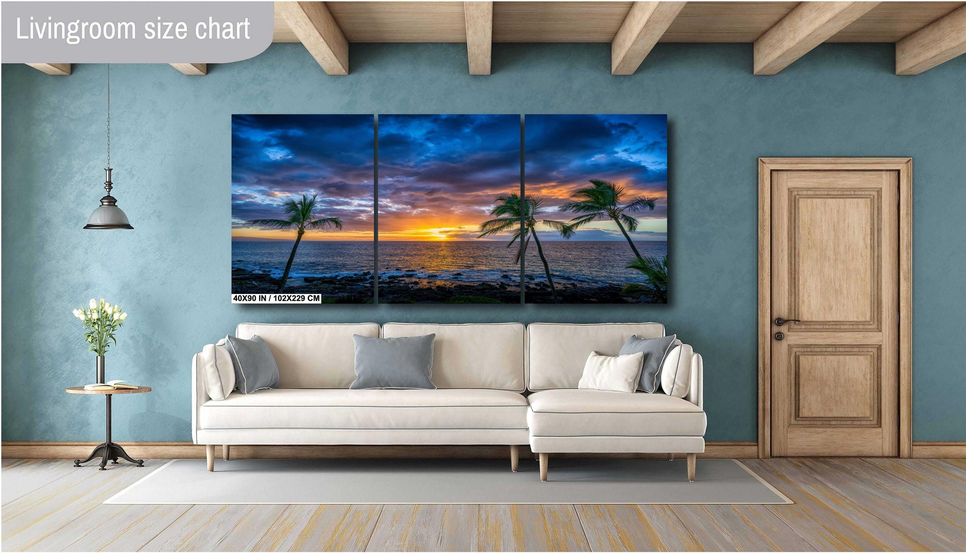 - Large canvas panels split into three separate ready to hang canvases that create a striking modern centerpiece
