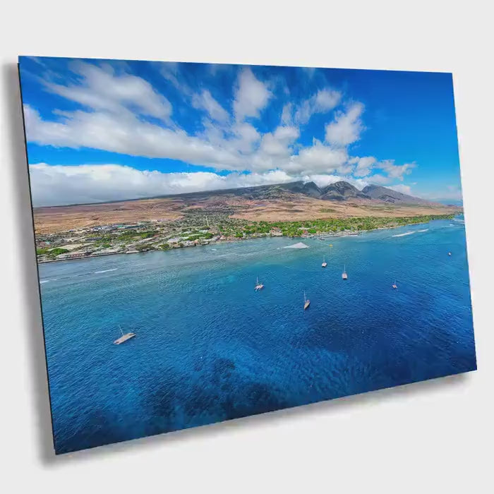 Customers trust 998 Millibar Photography for authentic Maui canvas prints that capture the essence of Lahaina pre fire photo scenes with exceptional clarity and color fidelity. This collection is perfect for lovers of tropical wall art seeking a unique nautical canvas print or metal photo print that stands out as both art and historical memento. Elevate your interior design with this ocean photo canvas showcasing Maui’s breathtaking harbor before the fire. The aluminum wall decor option adds a sleek modern touch while acrylic photo prints provide unmatched vibrancy for any setting. Whether decorating a home office or living room, these high-quality prints bring the spirit of Hawaii indoors with lasting beauty.