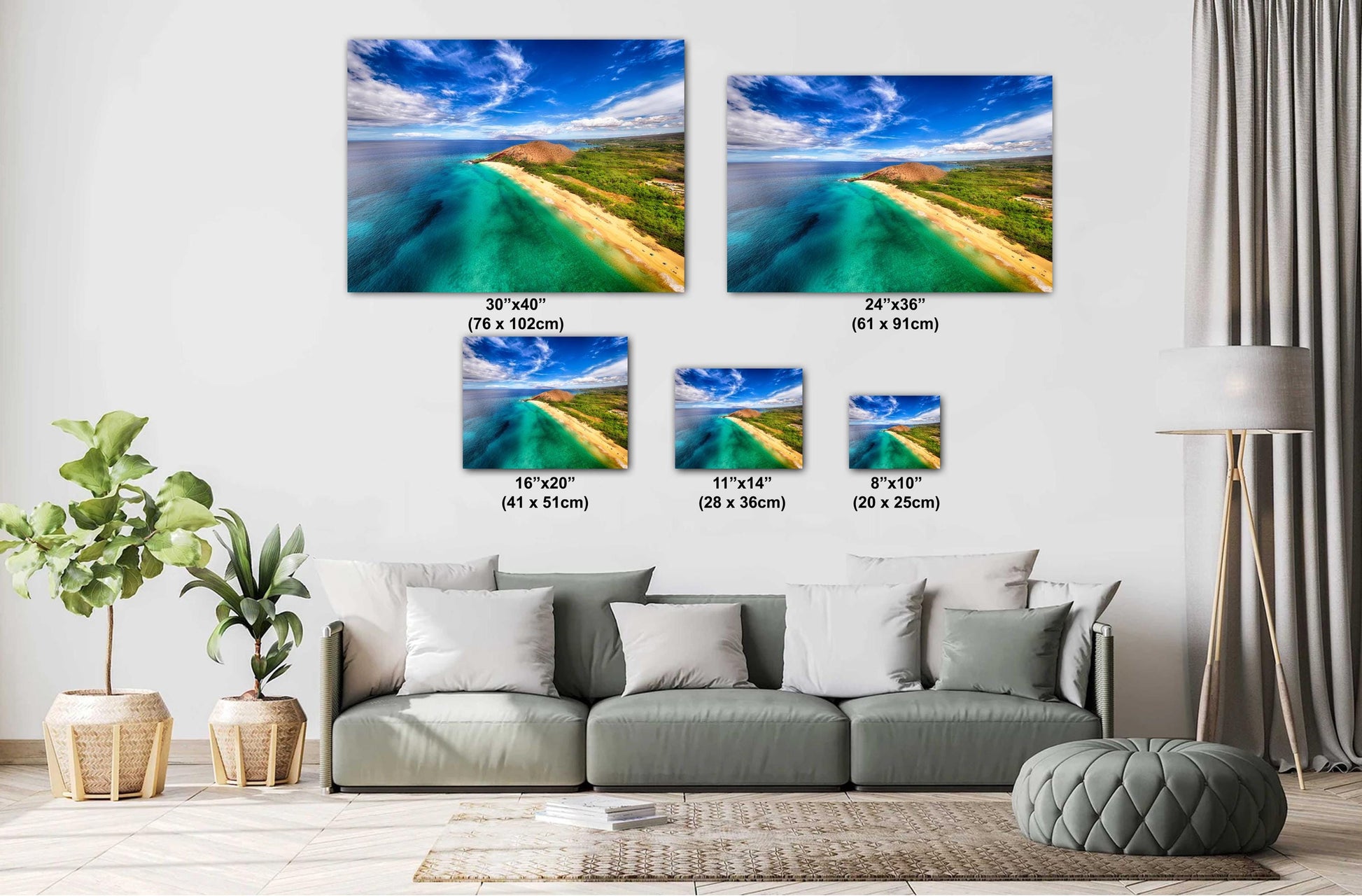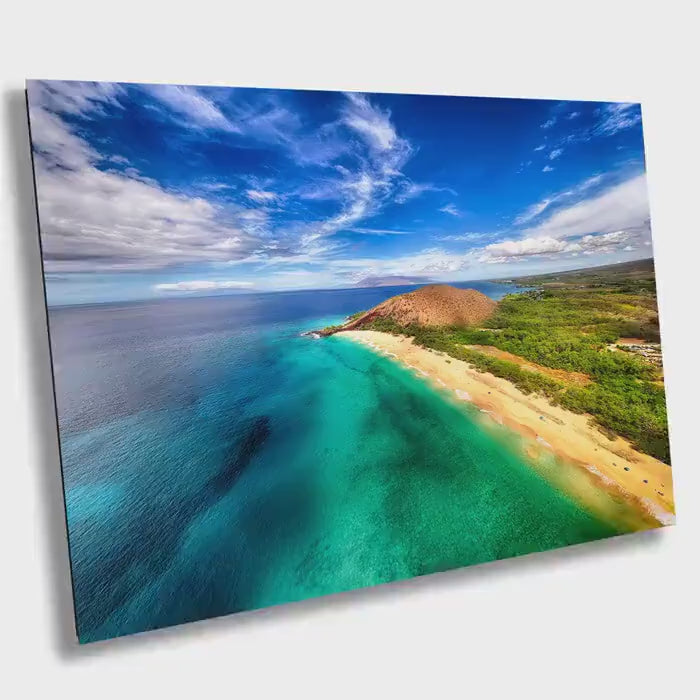 Maui wall art captures the stunning beauty of Makena Beach, also known as Big Beach, bringing vibrant tropical landscape art directly into your home for a serene and inspiring atmosphere. This exclusive collection by 998 Millibar Photography features high-quality Hawaii wall decor options that combine vivid ocean landscape art with durable materials to enhance any space. Whether you select a premium photo paper print or a ready to hang canvas, each piece delivers authentic Hawaiian beach art that transforms your room with bright colors and detailed imagery.