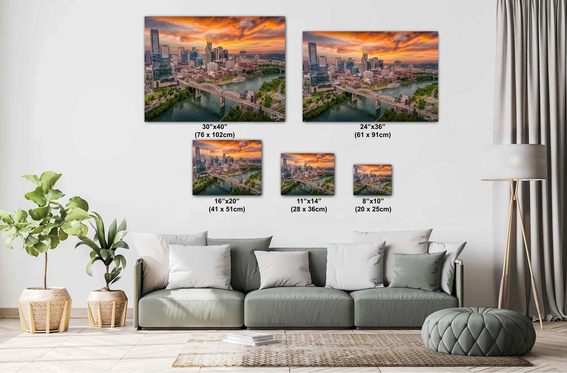 Enhance your living space with this Tennessee skyline art that combines artistic quality with meaningful design. The ready to hang canvas and aluminum metal print options provide convenient installation without sacrificing style. Celebrate Music City daily by bringing home this authentic urban photography print that blends modern home decor with cultural significance.