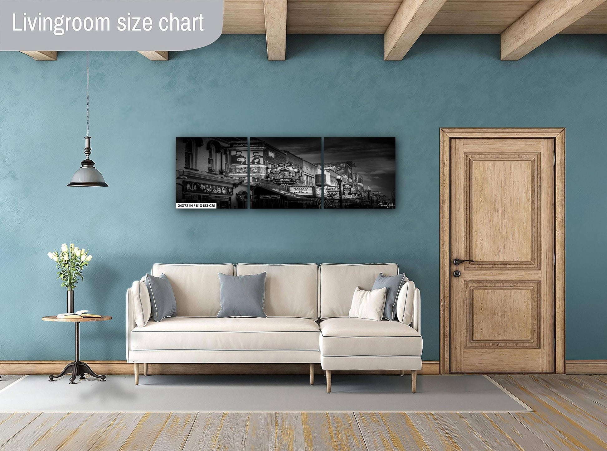 - Three-panel ready to hang canvas creating a modern triptych effect on larger walls