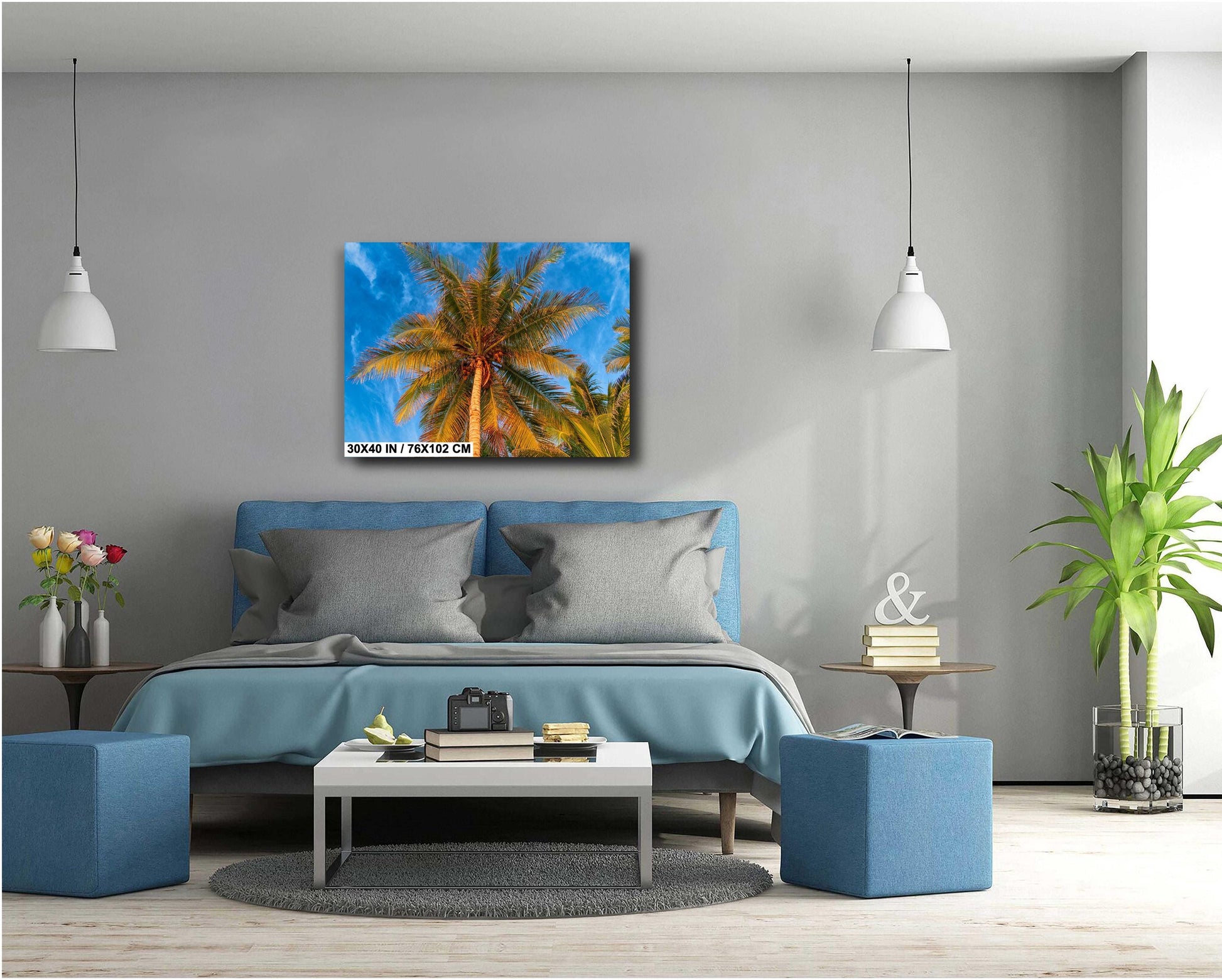 This large palm tree canvas serves as a vibrant tropical decor accent that perfectly complements boho style art themes or coastal home decoration schemes. Whether upgrading your own space or gifting a nature lover gift, this palm tree wall art is designed to impress with stunning imagery and lasting quality. Elevate your beach house decoration effortlessly with this versatile collection of tropical canvas print options and metal wall decor that bring the spirit of island life into any room.
