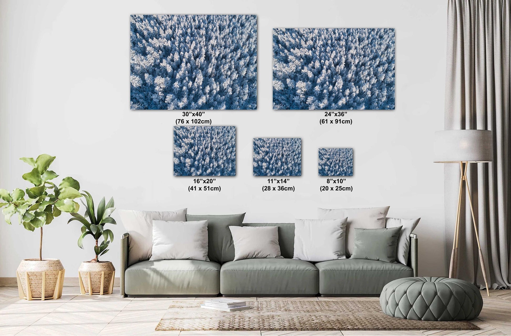 Elevate your home or office with this modern wall decor that blends nature's calm with artistic craftsmanship. Whether you prefer the classic appeal of premium photo paper or the contemporary style of aluminum metal art or acrylic photo prints, this collection offers versatile display options suited for minimalist nature print lovers. Transform your space with this winter wonderland scene that complements any interior while showcasing snow covered trees photo.