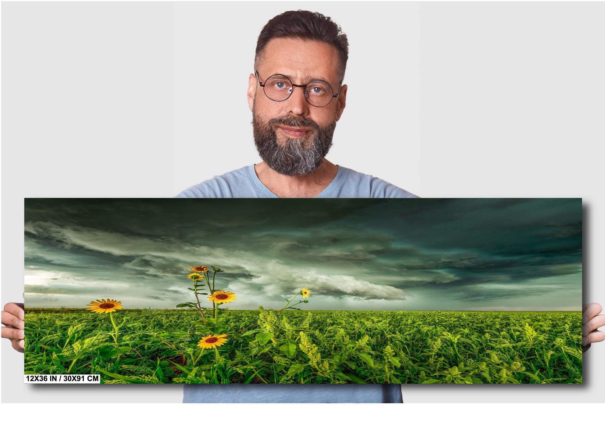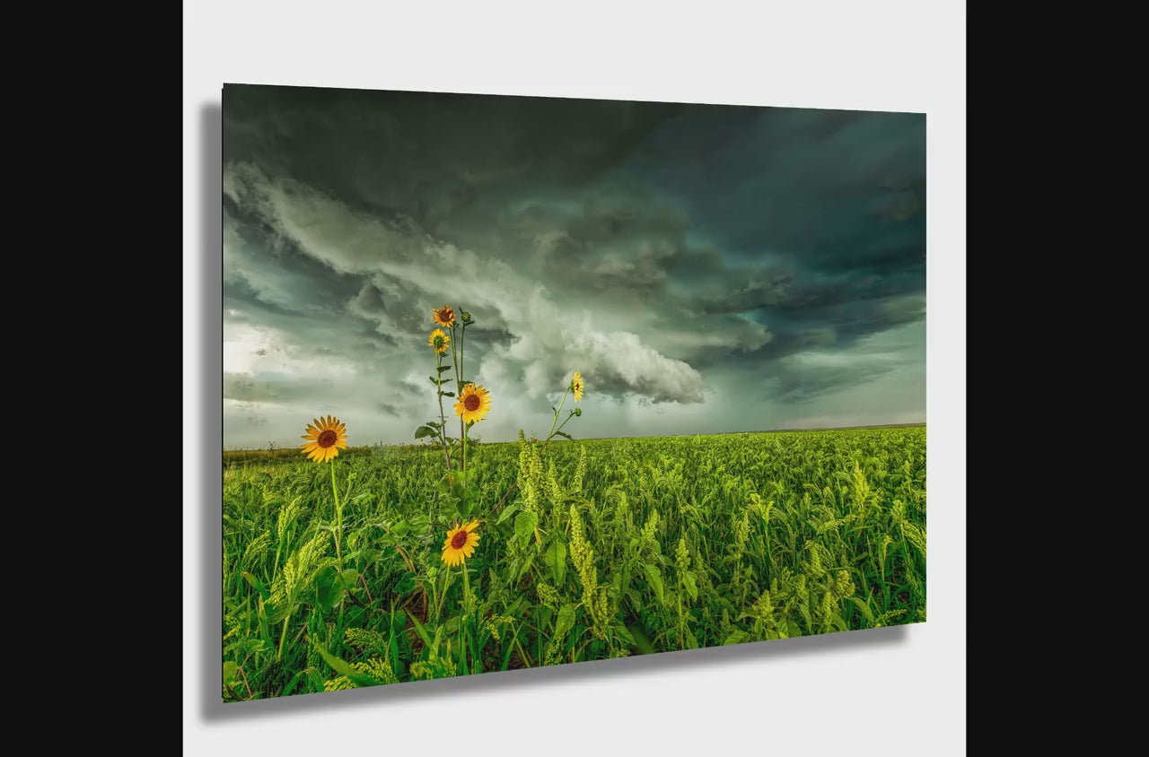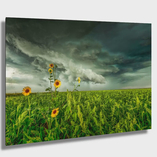 The Stormy Sky Wall Art captures the raw power of a Colorado storm sweeping over vibrant sunflower fields, making it an ideal choice for those seeking striking stormy sky wall art to elevate their living or work spaces. This moody landscape print blends dramatic nature photography with colorful storm photo elements, delivering a unique combination of intensity and beauty that transforms any room. Crafted by 998 Millibar Photography, each piece features modern nature artwork printed with UV-resistant inks to ensure lasting vibrancy and clarity. Backed by a satisfaction guarantee, this collection offers both visual impact and quality you can trust.