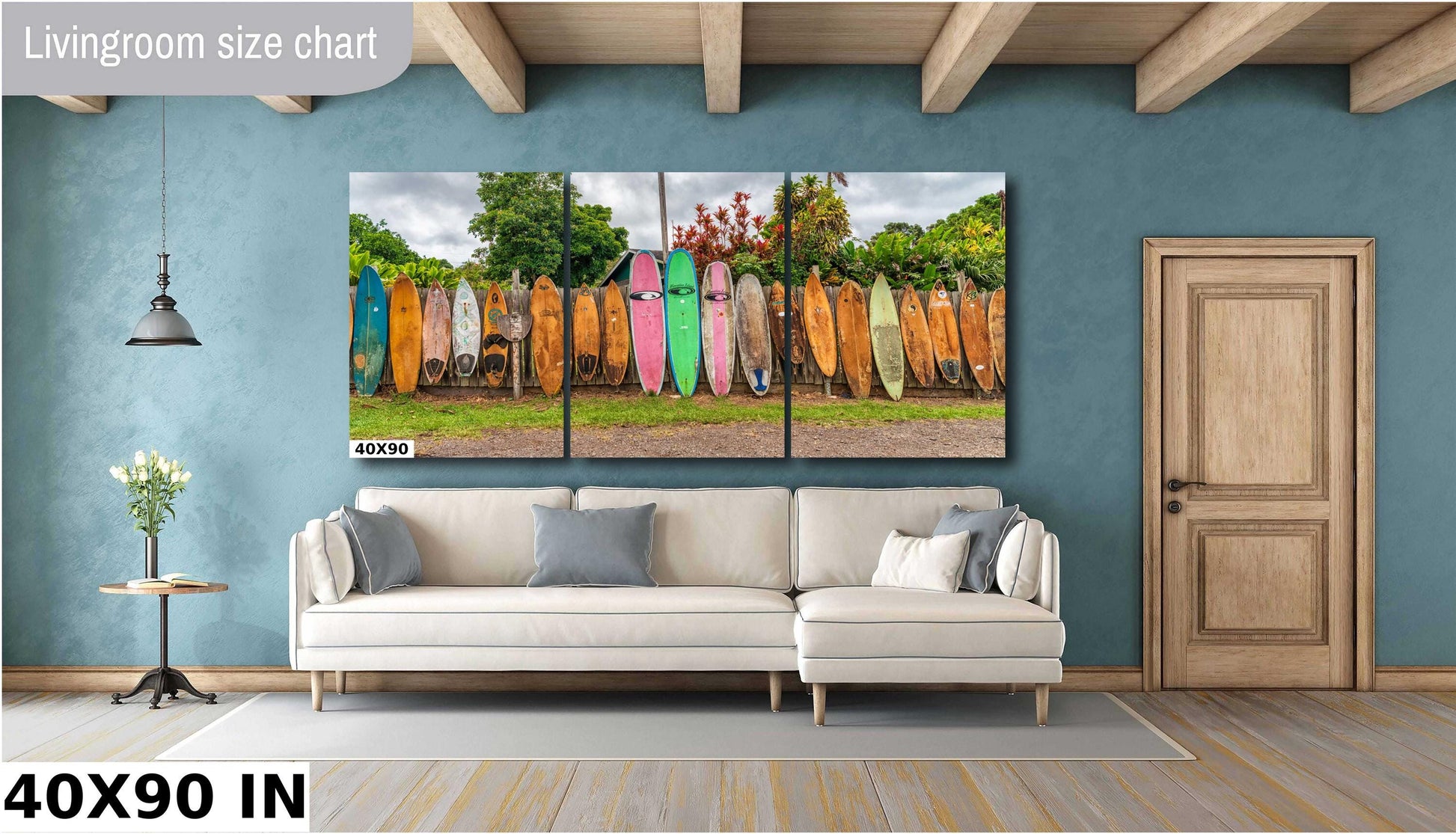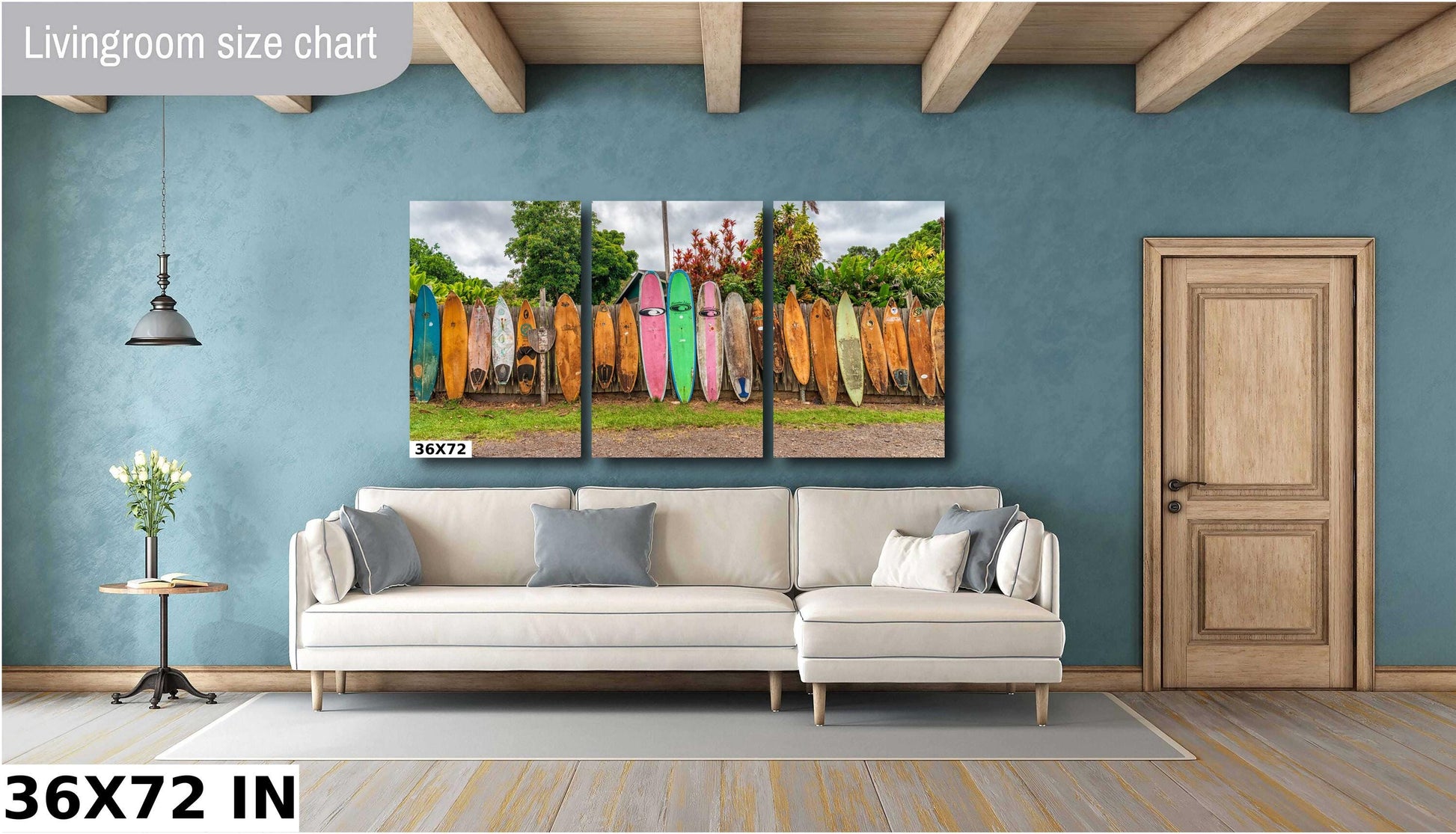 This surfboards wall art brings vibrant coastal beach decor into your home, featuring a stunning surfboard fence print from Jaws Maui, HI. This modern ocean wave poster captures authentic surf lifestyle artwork that transforms any room with tropical beach wall art designed to inspire relaxation and adventure. Crafted with UV-resistant inks, this surfboards wall art maintains bright colors for years, making it an ideal beach house decoration or nautical home accent.