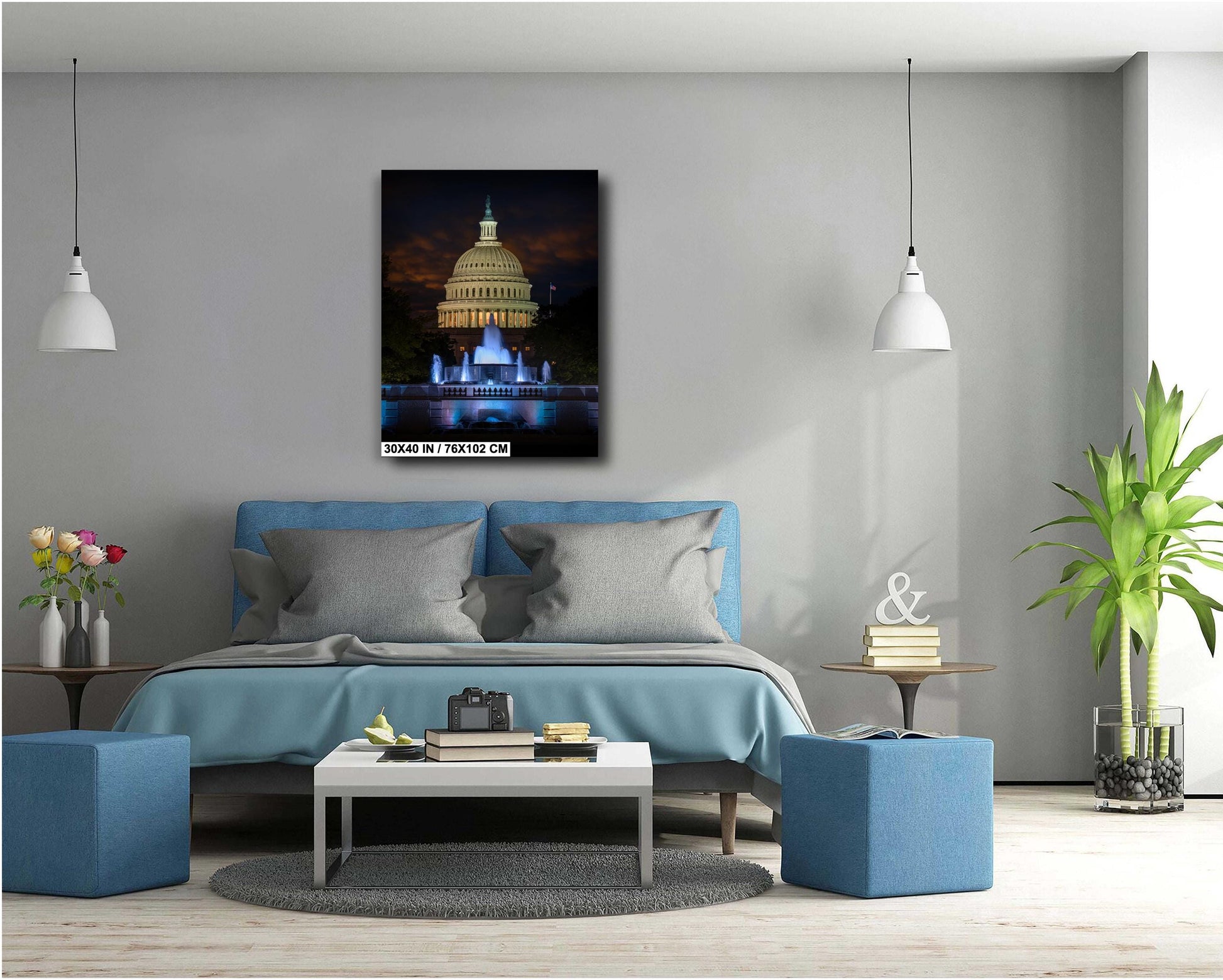 U.S. Capitol Wall Art brings the iconic Capitol building print into your home with premium craftsmanship and vivid detail. This U.S. Capitol Wall Art transforms any space by showcasing Washington DC art that highlights the government building's classic architecture, offering a stunning Capitol canvas print that elevates modern wall decor. Crafted with precision by 998 Millibar Photography, each piece delivers exceptional quality and durability, ensuring your artwork remains vibrant for years.
