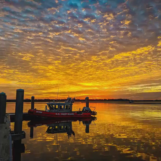 This coast guard photo art is created by 998 Millibar Photography, a trusted name known for producing high-resolution marine rescue artwork that meets professional standards. Each piece undergoes strict quality checks to ensure you receive vivid boat sunrise photos that truly capture the spirit of the U.S. Coast Guard.