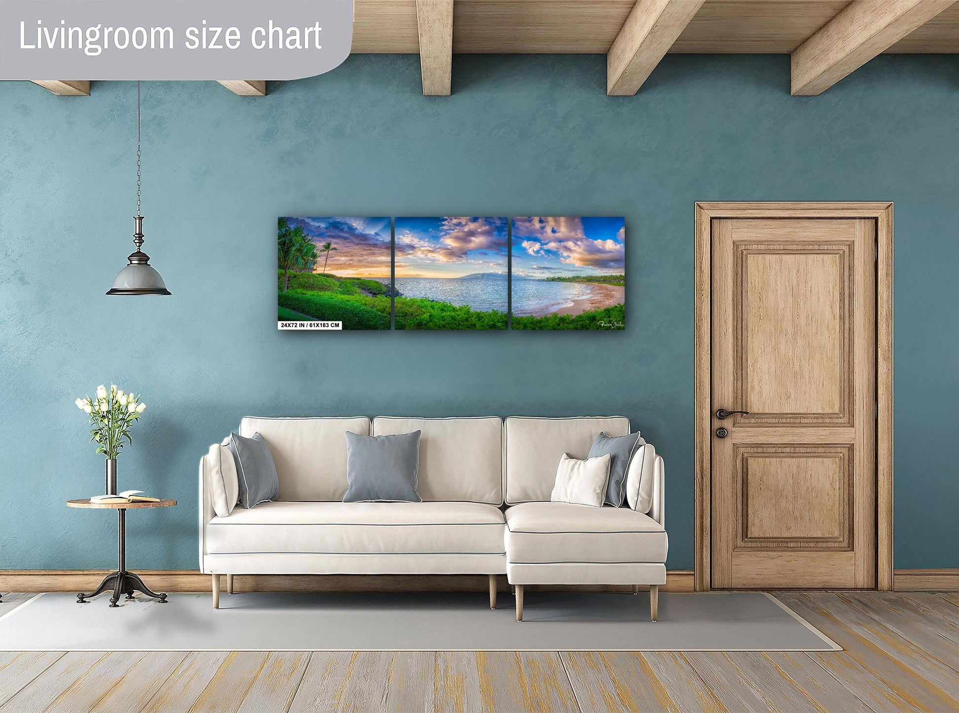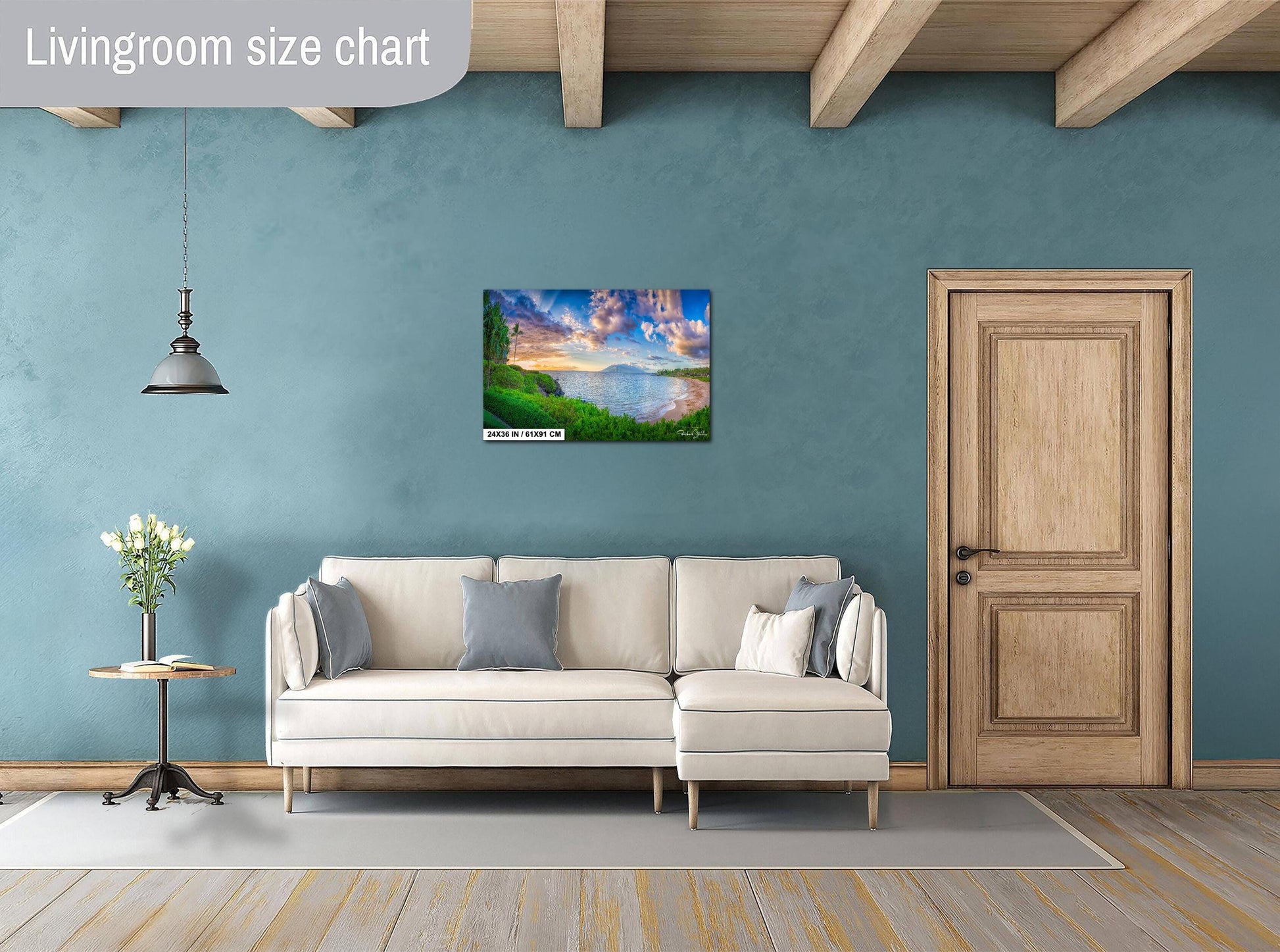 The ready to hang canvas option simplifies installation by eliminating the need for additional framing or assembly, allowing you to quickly refresh your space with tropical beach decor. For those seeking a contemporary look, the split panel canvas divides the image into three panels creating an eye-catching triptych effect that enhances large walls with dynamic presentation.